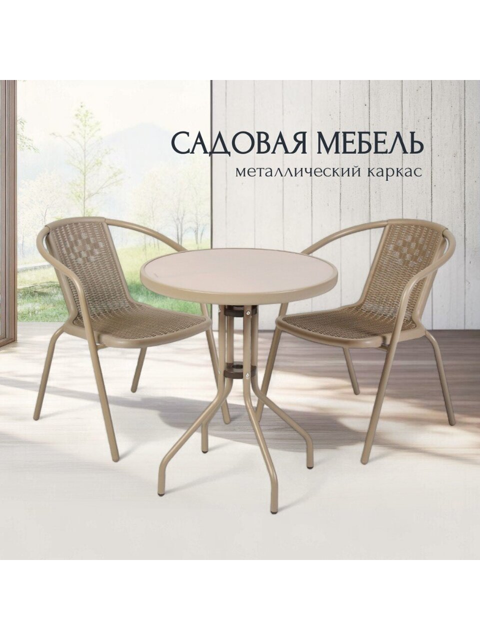 Вы можете приобрести «Мебель садовая Ливадия, бежевая, стол, 60х60х71 см, 2 кресла, 120 кг, 43х57х72 см, C010143» и другие товары в нашем интернет-магазине в Старом Осколе по низким ценам и с бесплатным самовывозом.