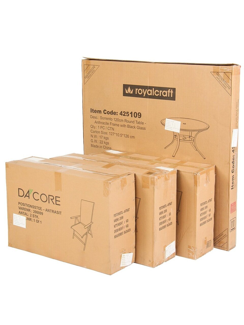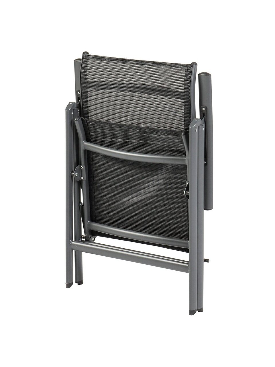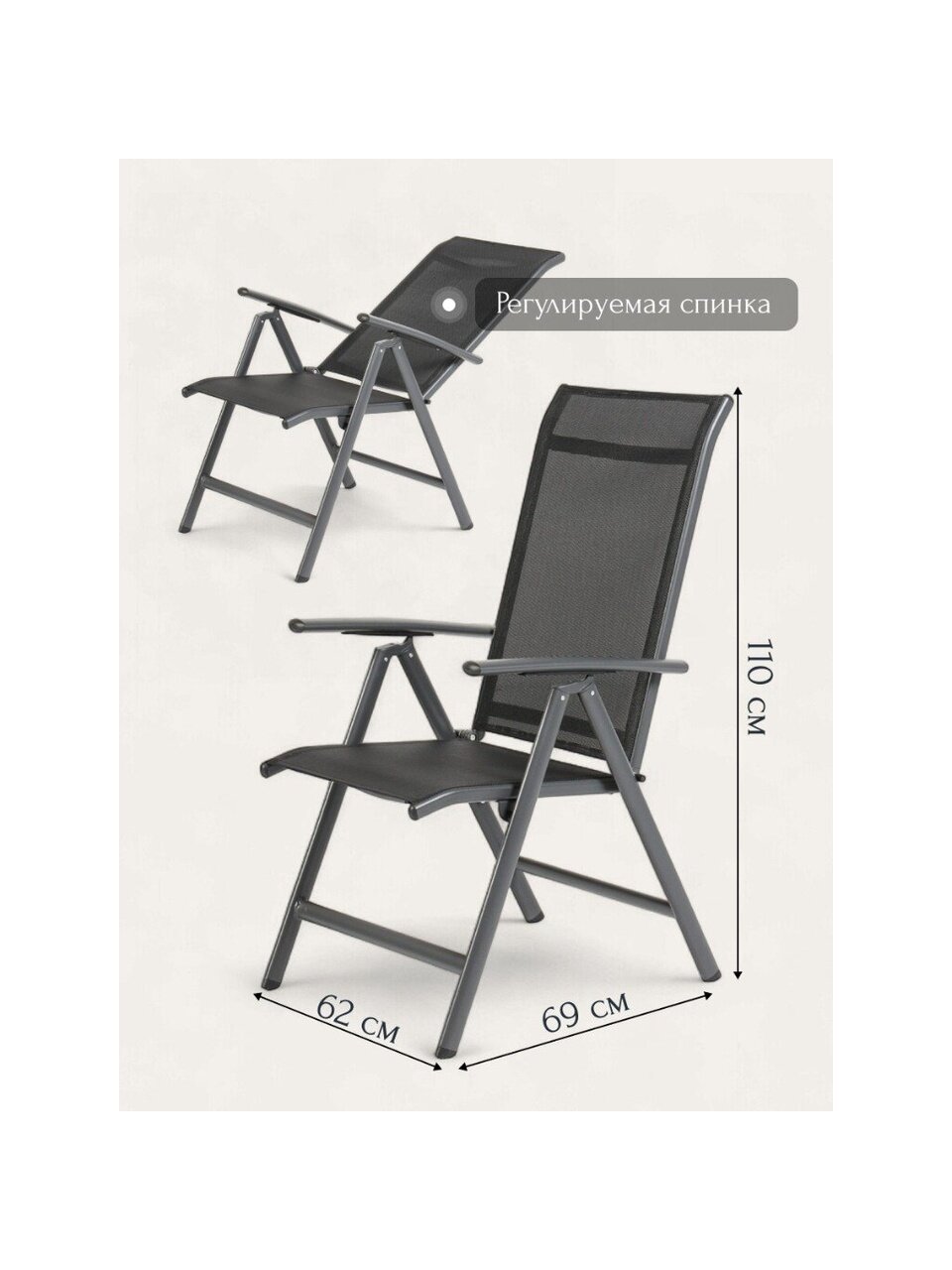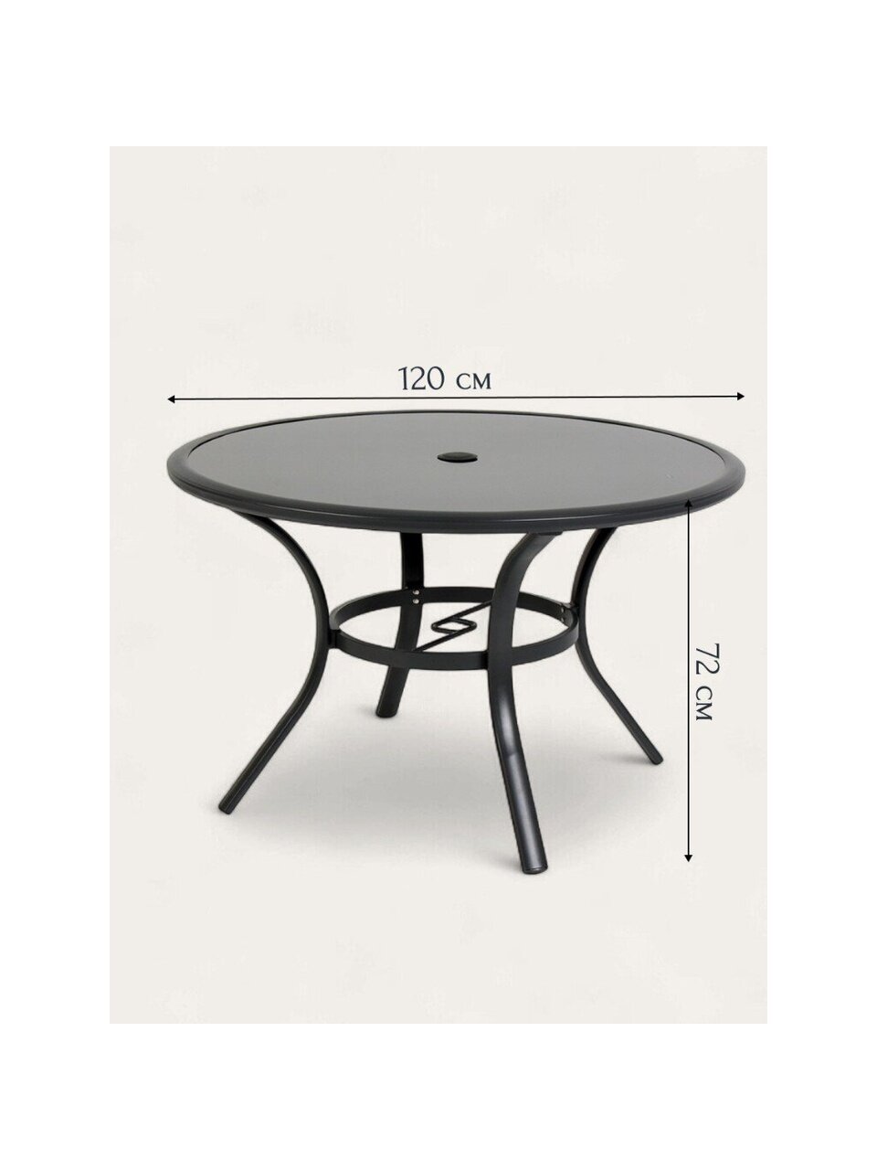 Мебель садовая Рейне отличается продуманной эргономикой и устойчивой конструкцией с алюминиевым каркасом. Жесткие сиденья с сеткой из теслина обеспечивают надежность и долговечность, а складная конструкция облегчает хранение и транспортировку, экономя место в межсезонье. Максимальная нагрузка как на стол, так и на стулья составляет: 130 кг. В центре столешницы предусмотрено специальное отверстие для зонта, что позволит создать тень и защиту от солнца в жаркие дни — важное преимущество для комфортного отдыха на открытом воздухе.