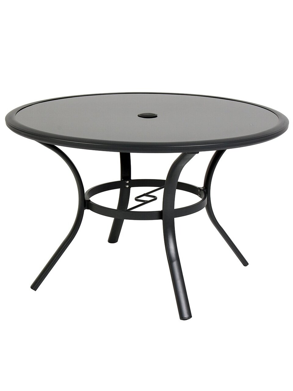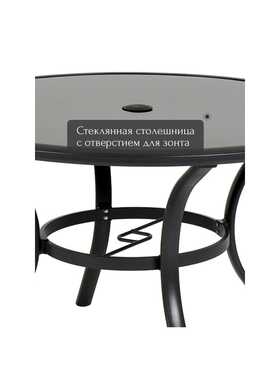 - отверстие для зонта в центре столешницы — защита от солнца и дополнительное удобство;