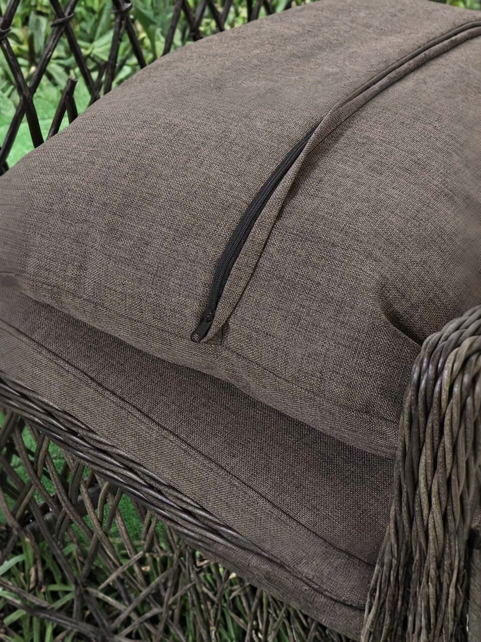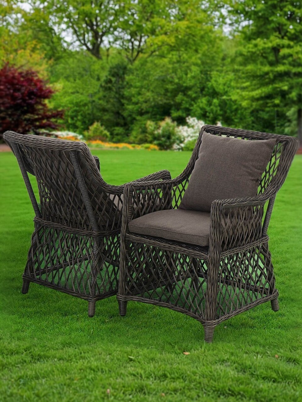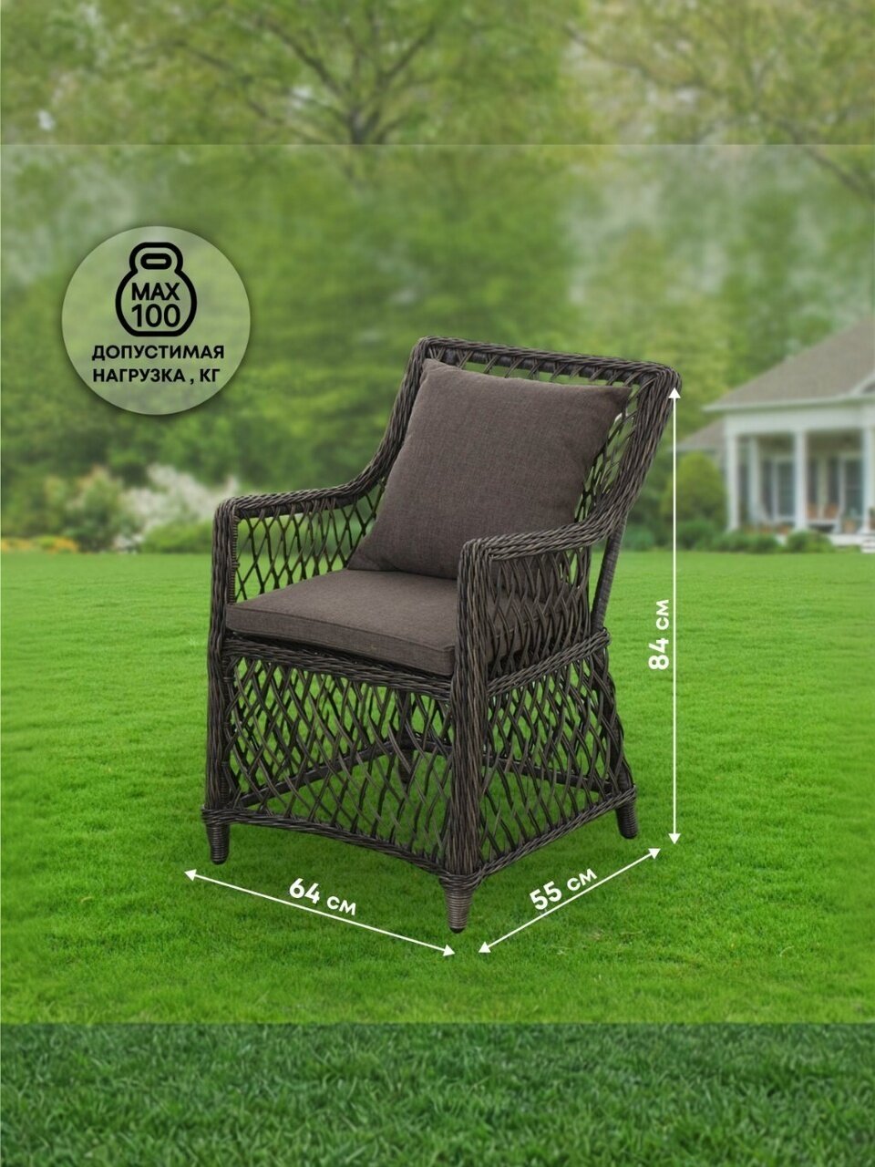 Роскошный комплект плетеной мебели станет отличным дополнением для загородного дома или дачи. Комплект состоит из четырех кресел с подушками и стола со столешницей из материала Polywood. Выполнен из искусственного ротанга, устойчивого к физическому и климатическому воздействию. Отлично подходит для летней веранды на даче. Цвет подушек освежит интерьер, а воздушное плетение добавит уюта.