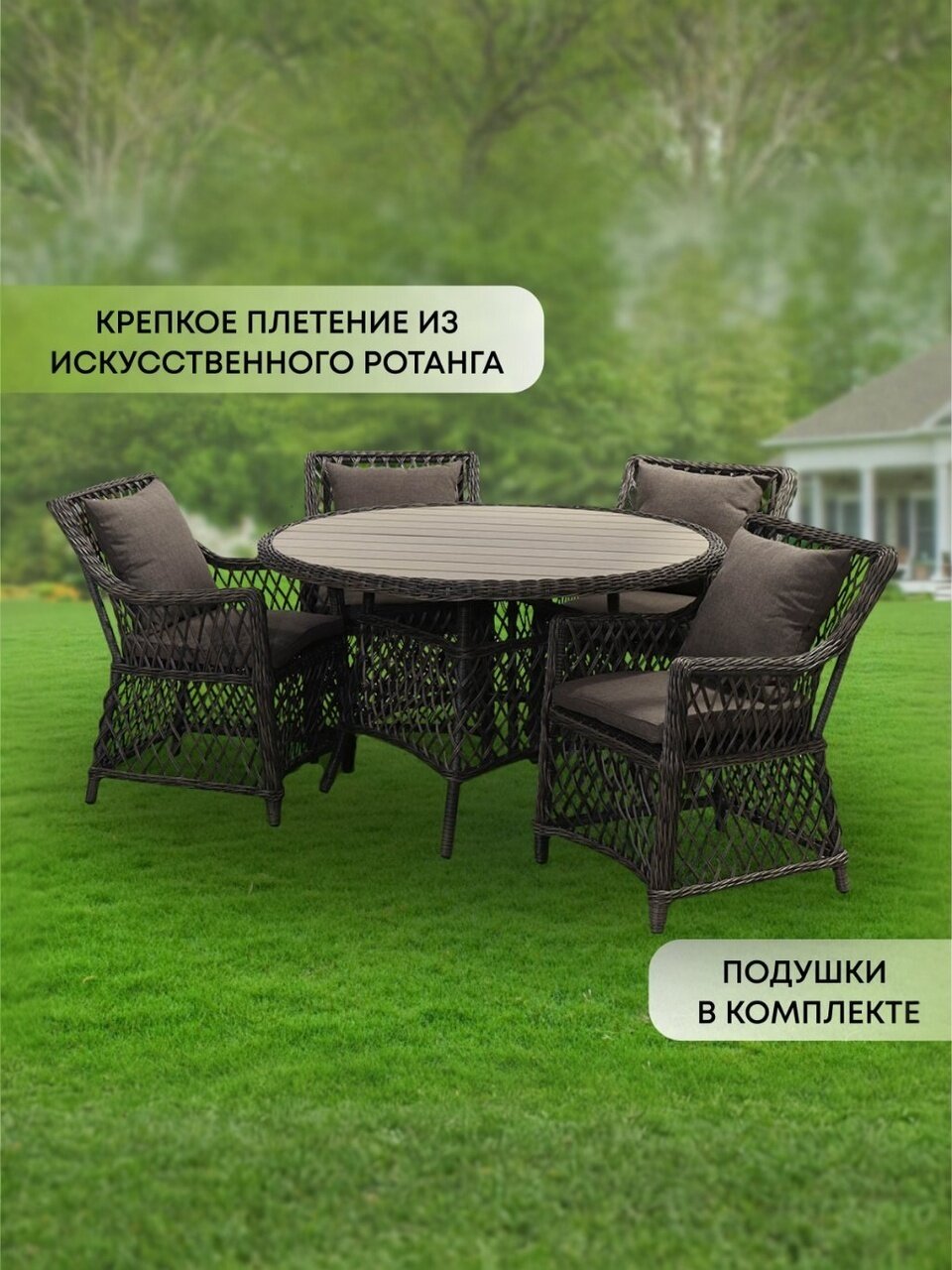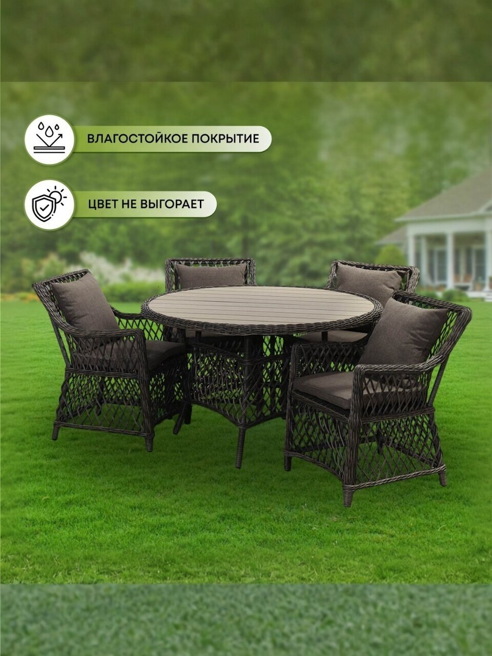 Вы можете приобрести «Мебель садовая Green Days, Форео, темно-коричневая, стол, 122х122х75 см, 4 кресла, подушка серо-коричневая, CYH162W-2» и другие товары в нашем интернет-магазине в Краснодаре по низким ценам и с бесплатным самовывозом.