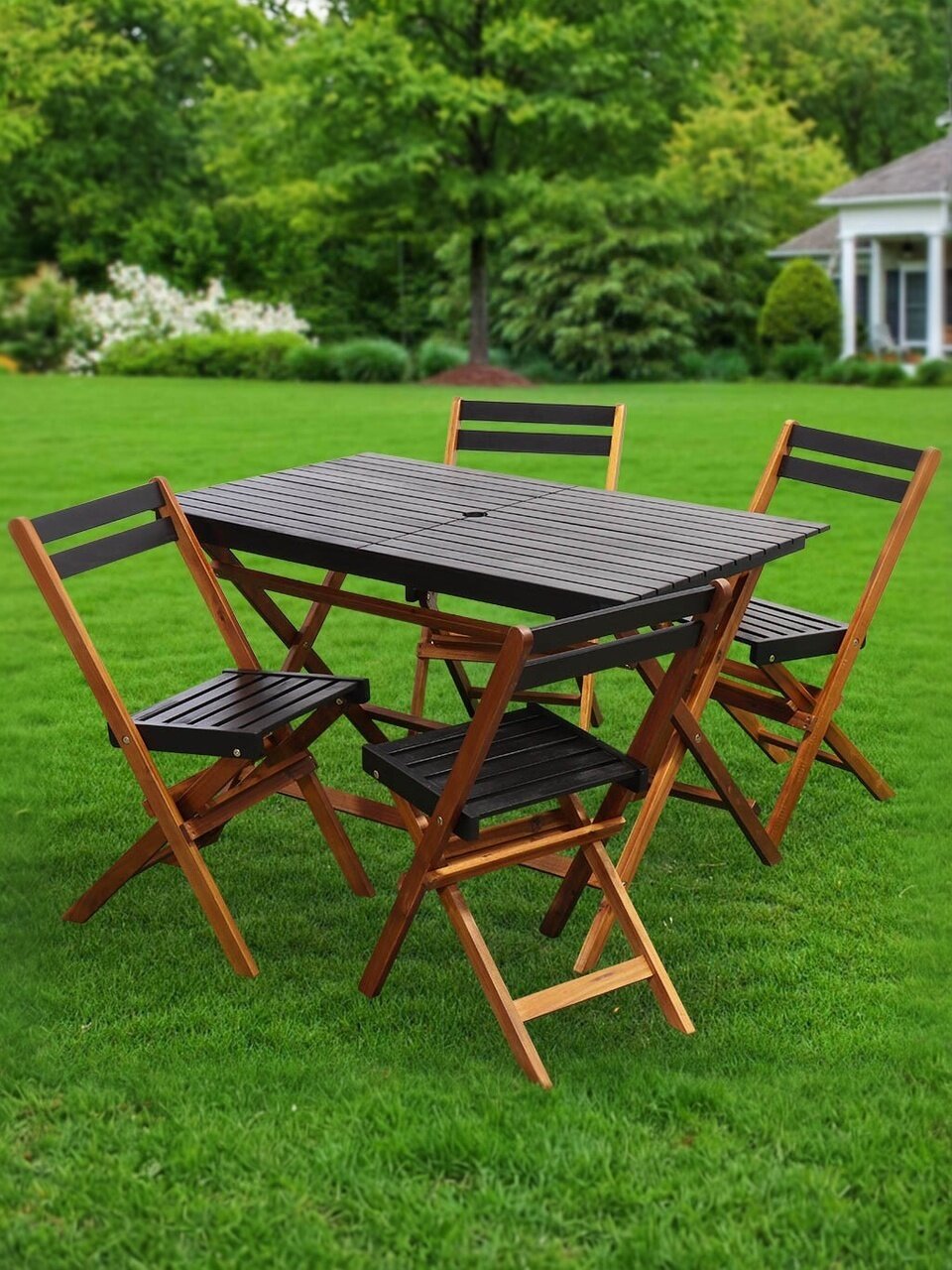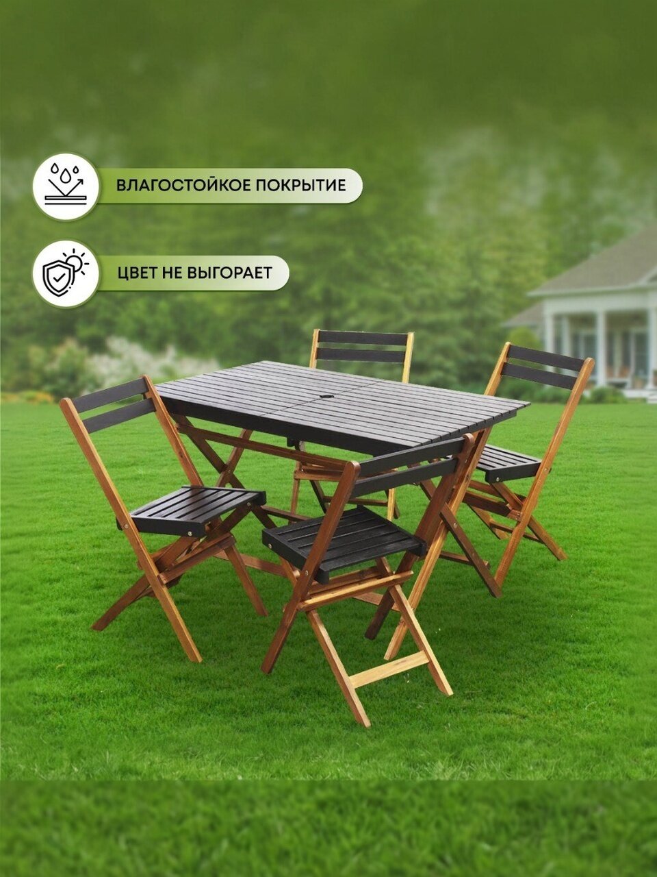 - Комплект садовой мебели реечной пропитан маслом, верхняя часть - окрашена в черный цвет;