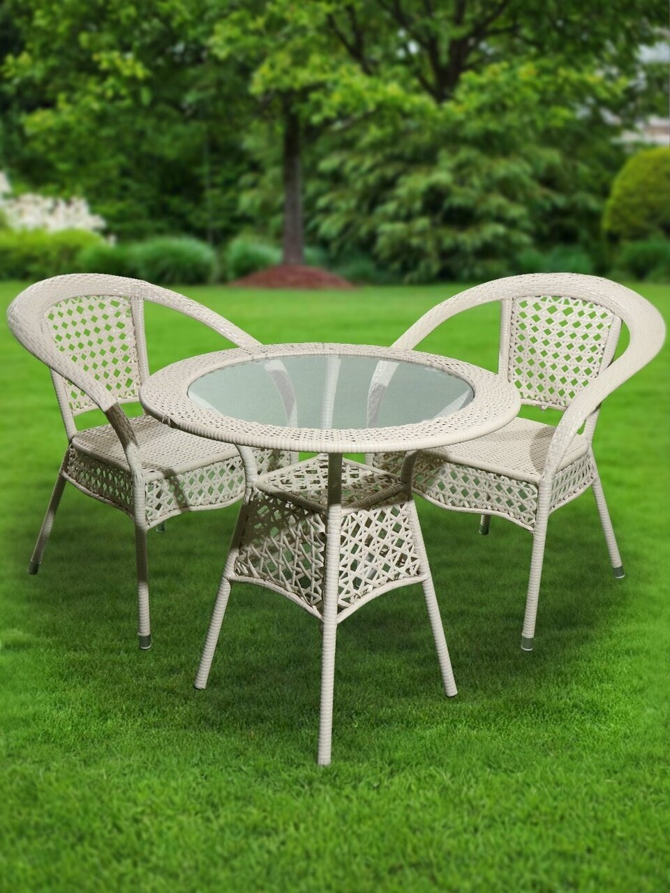 Роскошный комплект плетеной мебели станет отличным дополнением для загородного дома или дачи. В состав комплекта входят два вместительных кресла и стол со столешницей из стекла. Выполнен из искусственного ротанга, устойчивого к физическому и климатическому воздействию. Отлично подходит для летней веранды на даче.