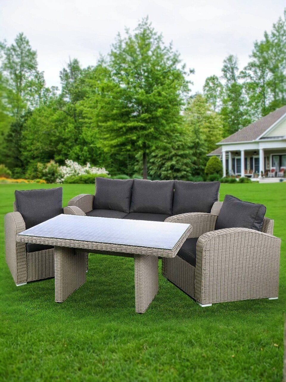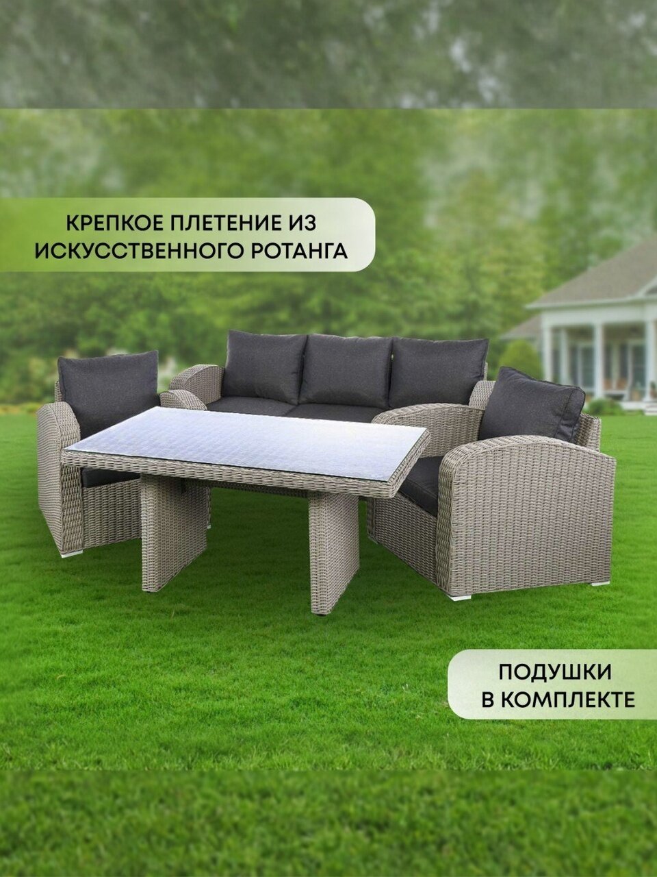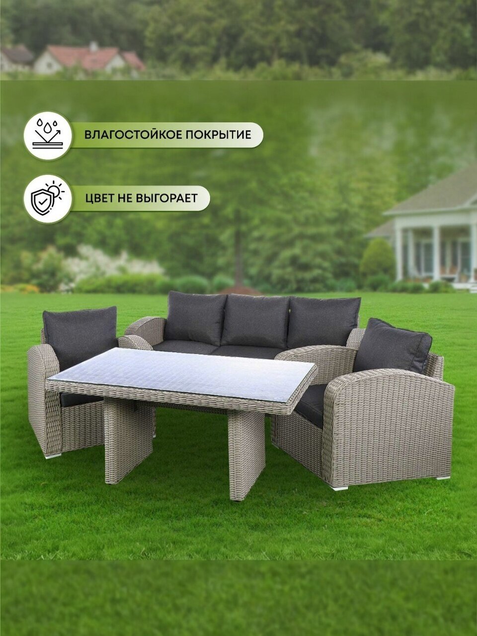 Комплект садовой мебели станет отличным дополнением для загородного дома или дачи. Благодаря своим качествам комплект отлично подойдет для постоянного использования на открытом воздухе с ранней весны до поздней осени. Мебель выполнена в изысканном дизайнерском решении, что позволяет ей гармонично вписываться в любое окружение.
