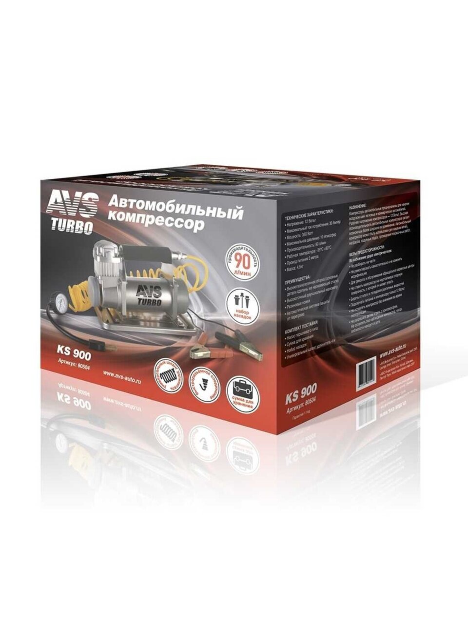 Автомобильный компрессор AVS KS900 станет отличным помощником как в гараже, так и для хозяйственных нужд в частном доме. Благодаря высокой производительности прибора Вы сможете проводить даже длительные работы не прерываясь. Покрасочные или шиномонтажные работы, пескоструйная зачистка или продувка от мусора превратятся для Вас в простое и лёгкое дело, которое не требует чрезмерного вложения сил и времени.