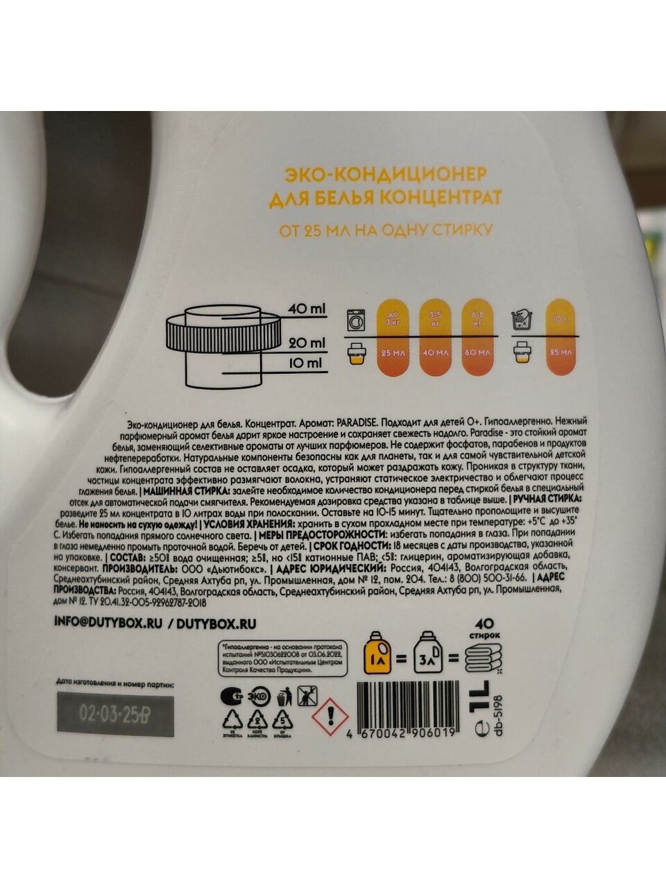 Вы можете приобрести «Кондиционер для белья Dutybox, 1 л, Paradise, Эко, концентрат» и другие товары в нашем интернет-магазине в Иваново по низким ценам и с бесплатным самовывозом.