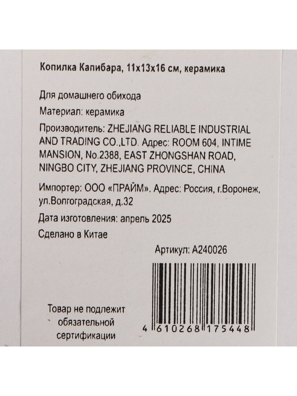 Вы можете приобрести «Копилка Капибара, 13х11х16 см, керамика, A240026» и другие товары в нашем интернет-магазине в Таганроге по низким ценам и с бесплатным самовывозом.
