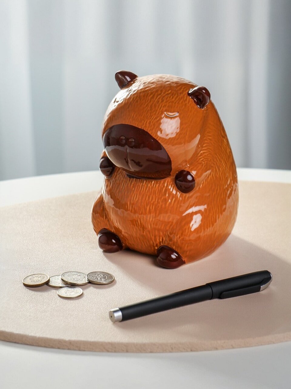 Копилка Капибара из керамики — оригинальный и функциональный аксессуар для хранения монет и банкнот, который станет ярким акцентом в интерьере. Необычный дизайн в виде милой капибары привлекает внимание и создает атмосферу уюта в любом доме. Благодаря компактным размерам 11х13х16 см копилка легко разместится на полке, рабочем столе или в детской комнате, не занимая много места. Коричневый цвет гармонично впишется в современный и классический интерьер, добавив нотку тепла и уюта. Керамика, из которой выполнена копилка, отличается прочностью и долговечностью, что обеспечивает надежность хранения накоплений.