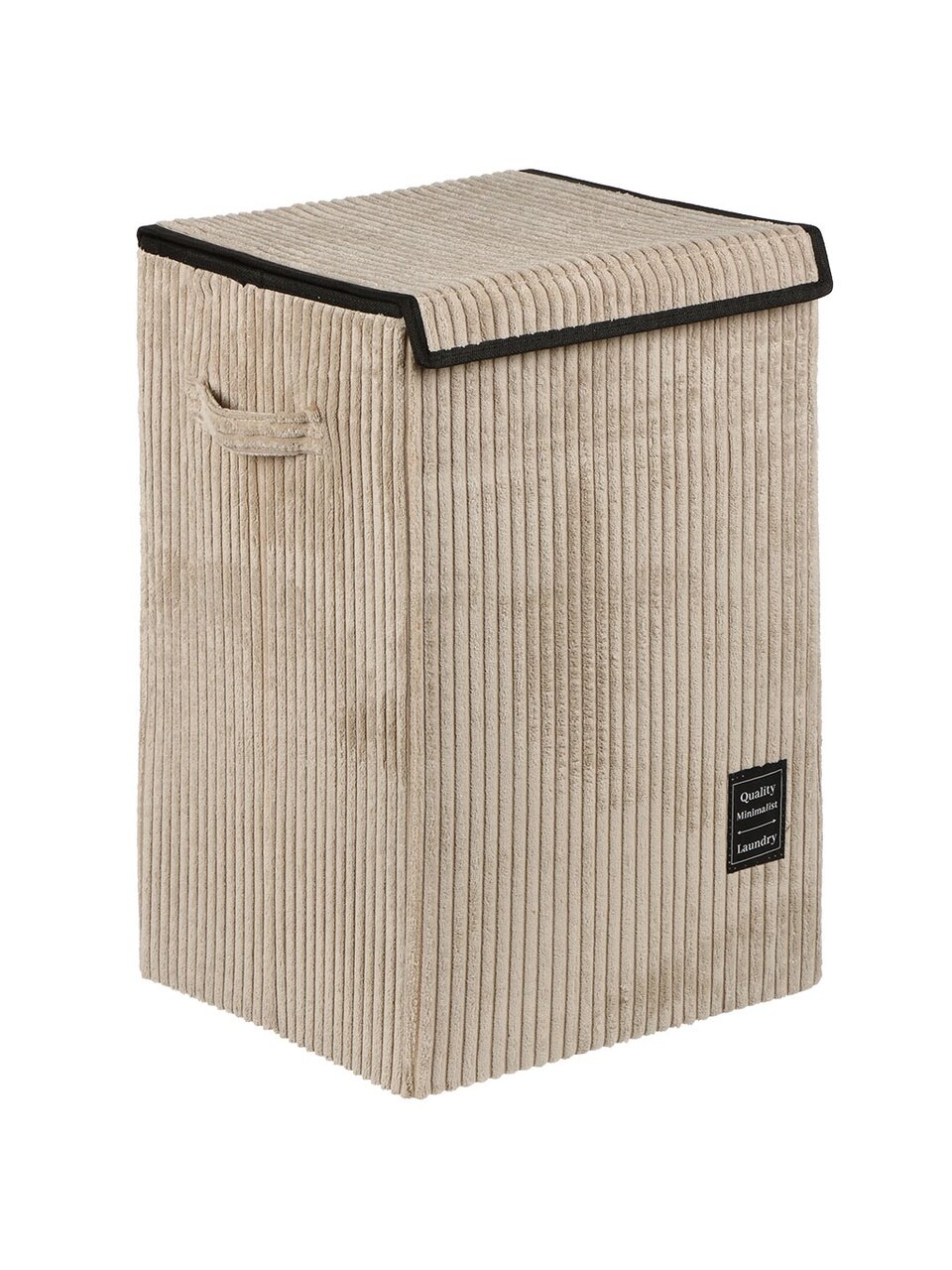 В отличие от пластиковых или плетёных моделей, текстильная корзина более лёгкая, не царапает пол и не скользит. Серый цвет универсален и не маркий, а мягкая поверхность приятна на ощупь. Если вы ищете, чем отличается корзина с крышкой от открытых — крышка защищает содержимое от пыли и домашних животных. Ручки упрощают переноску, что особенно удобно для дачи или переезда.