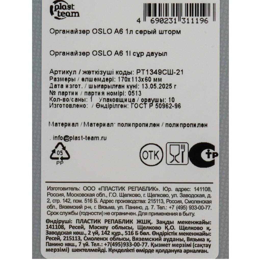 Корзина 1 л Plast team Oslo: компактное хранение для кухни, ванной и дачи. Размер 17х11,3 см, пластик «Серый шторм» — современное решение для порядка без лишних затрат.