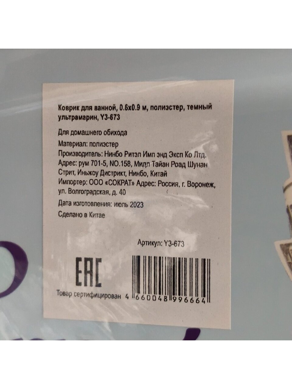 Вы можете приобрести «Коврик для ванной, антискользящий, 0.6х0.9 м, полиэстер, темный ультрамарин, Макарон, Y3-673» и другие товары в нашем интернет-магазине в Астрахани по низким ценам и с бесплатным самовывозом.