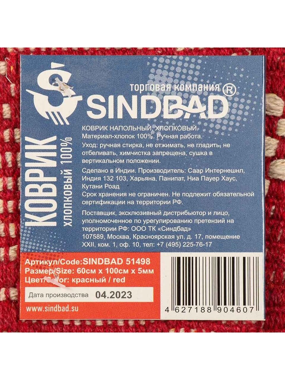 Грязезащитный коврик SINDBAD — современное решение для поддержания чистоты в доме и на даче. Яркий красный цвет добавит акцент в интерьер и подчеркнет индивидуальность любого пространства. Благодаря прямоугольной форме 60х100 см коврик легко впишется в прихожую, коридор, зону входа или даже на террасу. Ручное плетение придаёт изделию особую прочность и уникальный внешний вид, а натуральный хлопок обеспечивает экологичность и безопасность для всех членов семьи.
