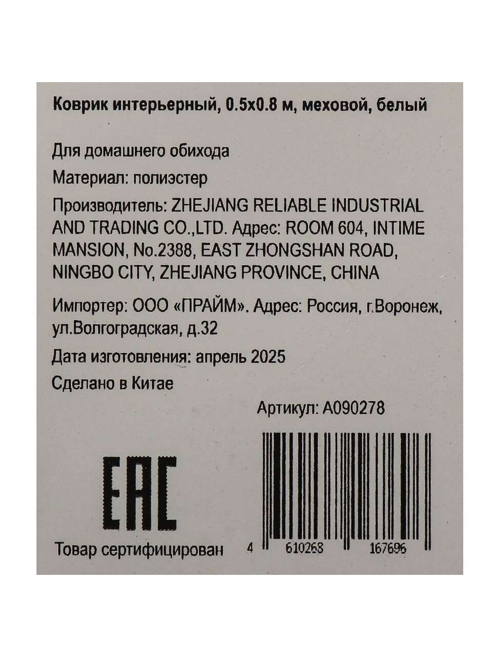Белый интерьерный коврик из искусственного меха 0.5х0.8 м — уют и стиль для любого пространства, легко чистится, подходит для дома и дачи.