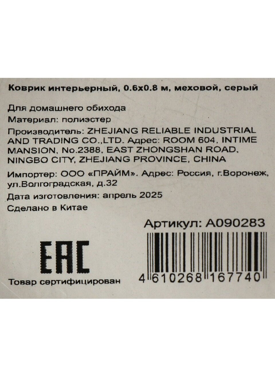 Коврик выполнен из современного искусственного меха, который сохраняет внешний вид и мягкость в течение нескольких лет при правильном уходе.