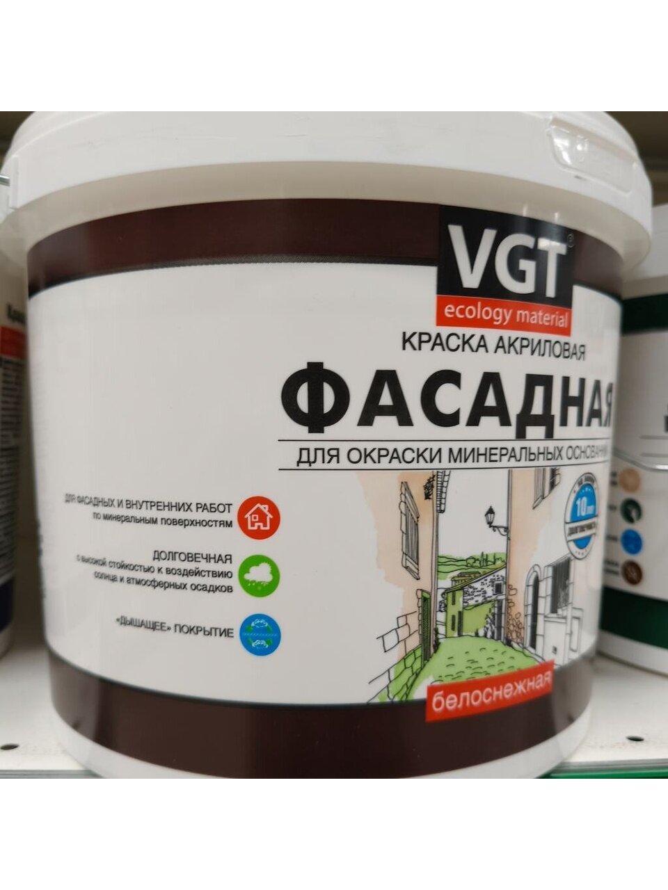 Вы можете приобрести «Краска водно-дисперсионная, VGT, акриловая, фасадная, матовая, белоснежная, 7 кг» и другие товары в нашем интернет-магазине в Липецке по низким ценам и с бесплатным самовывозом.
