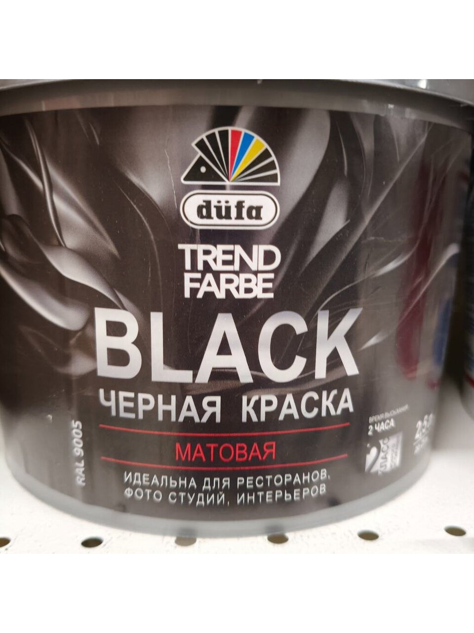 Вы можете приобрести «Краска водно-дисперсионная, Dufa, Trend Farbe Black, акриловая, для стен и потолков, матовая, черная, 2.5 л» и другие товары в нашем интернет-магазине в Борисоглебске по низким ценам и с бесплатным самовывозом.