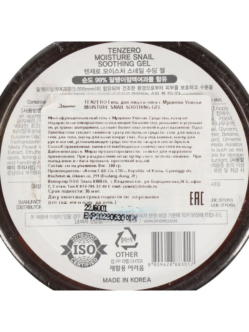 Вы можете приобрести «Гель-эссенция для лица и тела, Tenzero, Moisture Snail Soothing Gel, восстановление, для всех типов кожи, 300 мл, с муцином улитки» и другие товары в нашем интернет-магазине в Борисоглебске по низким ценам и с бесплатным самовывозом.