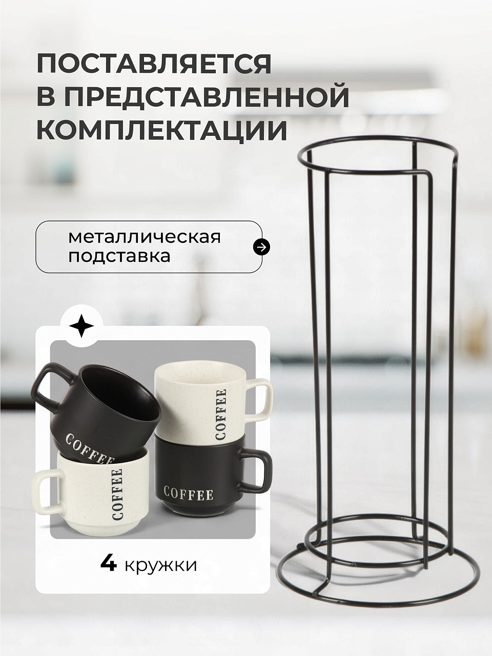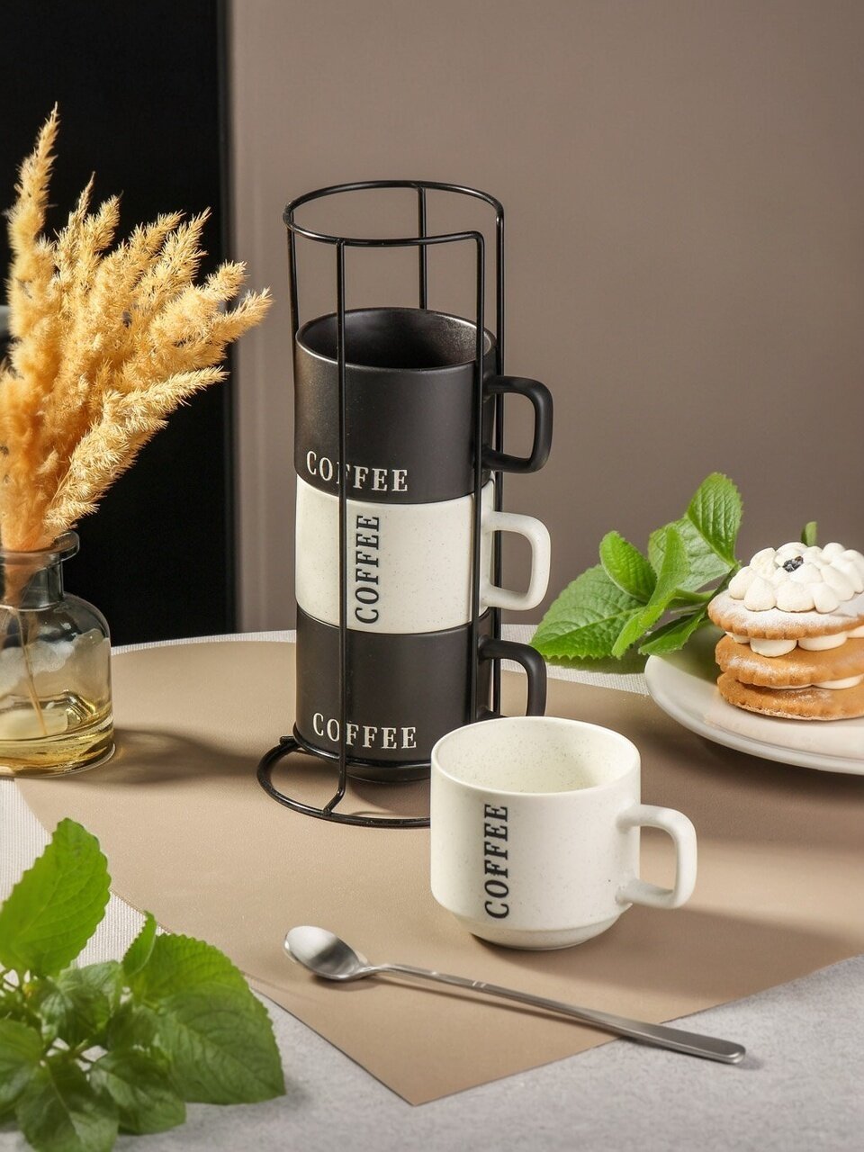 Эти кружки выполнены в стильном черном цвете, который идеально вписывается в интерьер в стиле лофт. Они созданы для тех, кто ценит минимализм и утонченность. Керамика, из которой выполнены кружки, обеспечивает долговечность и комфорт в использовании, а металлическая подставка добавляет изюминку и завершает образ.