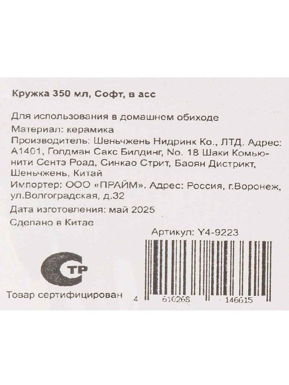 Вы можете приобрести «Кружка керамика, 350 мл, Софт, Y4-9223, в ассортименте» и другие товары в нашем интернет-магазине в Коврове по низким ценам и с бесплатным самовывозом.