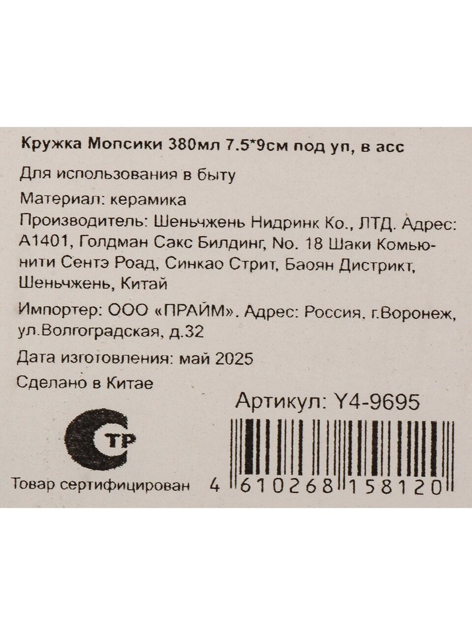 Вы можете приобрести «Кружка керамика, 380 мл, Мопсики, 7.5х9 см, подарочная упаковка, Y4-9695, в ассортименте» и другие товары в нашем интернет-магазине в Таганроге по низким ценам и с бесплатным самовывозом.
