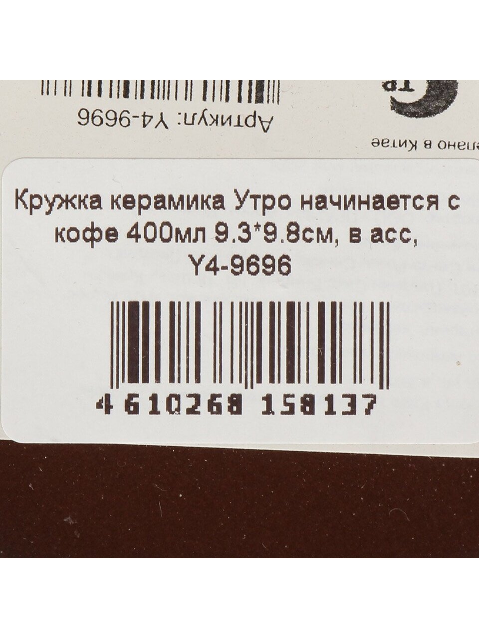 Вы можете приобрести «Кружка керамика, 400 мл, Утро начинается с кофе, 9.3х9.8 см, Y4-9696, в ассортименте» и другие товары в нашем интернет-магазине в Санкт-Петербургe по низким ценам и с бесплатным самовывозом.