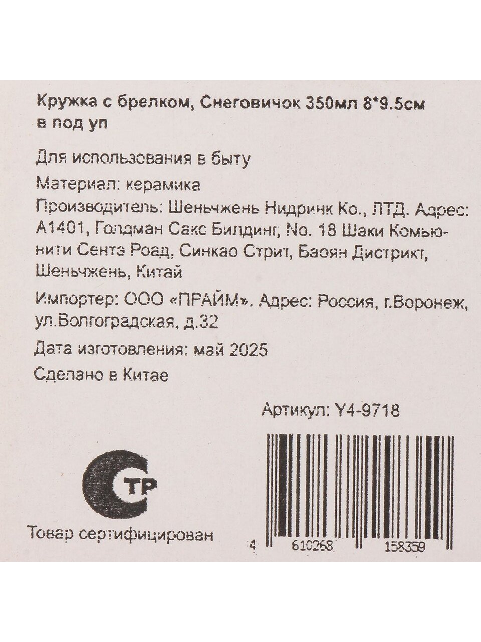 Вы можете приобрести «Кружка керамика, 350 мл, Снеговичок, 8х9.5 см, с брелоком, в подарочной упаковке, Y4-9718» и другие товары в нашем интернет-магазине в Казани по низким ценам и с бесплатным самовывозом.