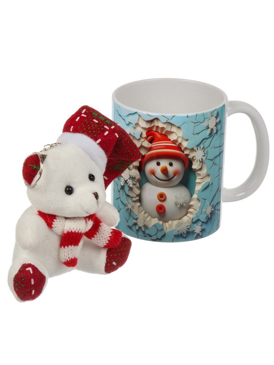 - Эксклюзивный новогодний дизайн: кружка с рисунком снеговика и брелоком — отличный выбор для подарка на Новый год