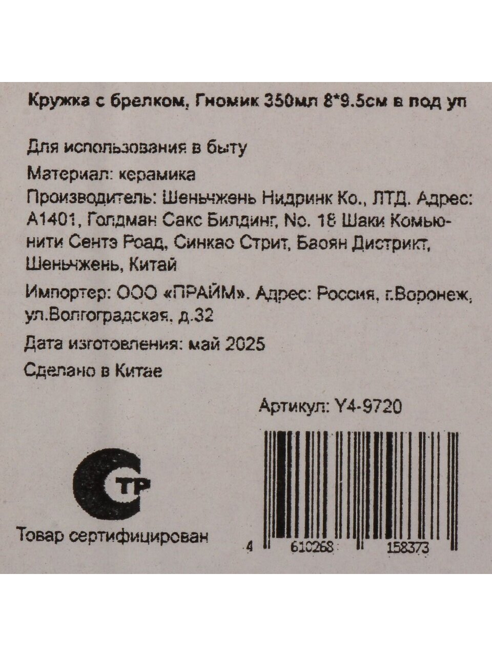 Керамическая кружка "Гномик" 350 мл с брелоком — идеальный подарок на Новый год и каждый день: яркий дизайн, долговечность, подходит для СВЧ и посудомоечной машины.