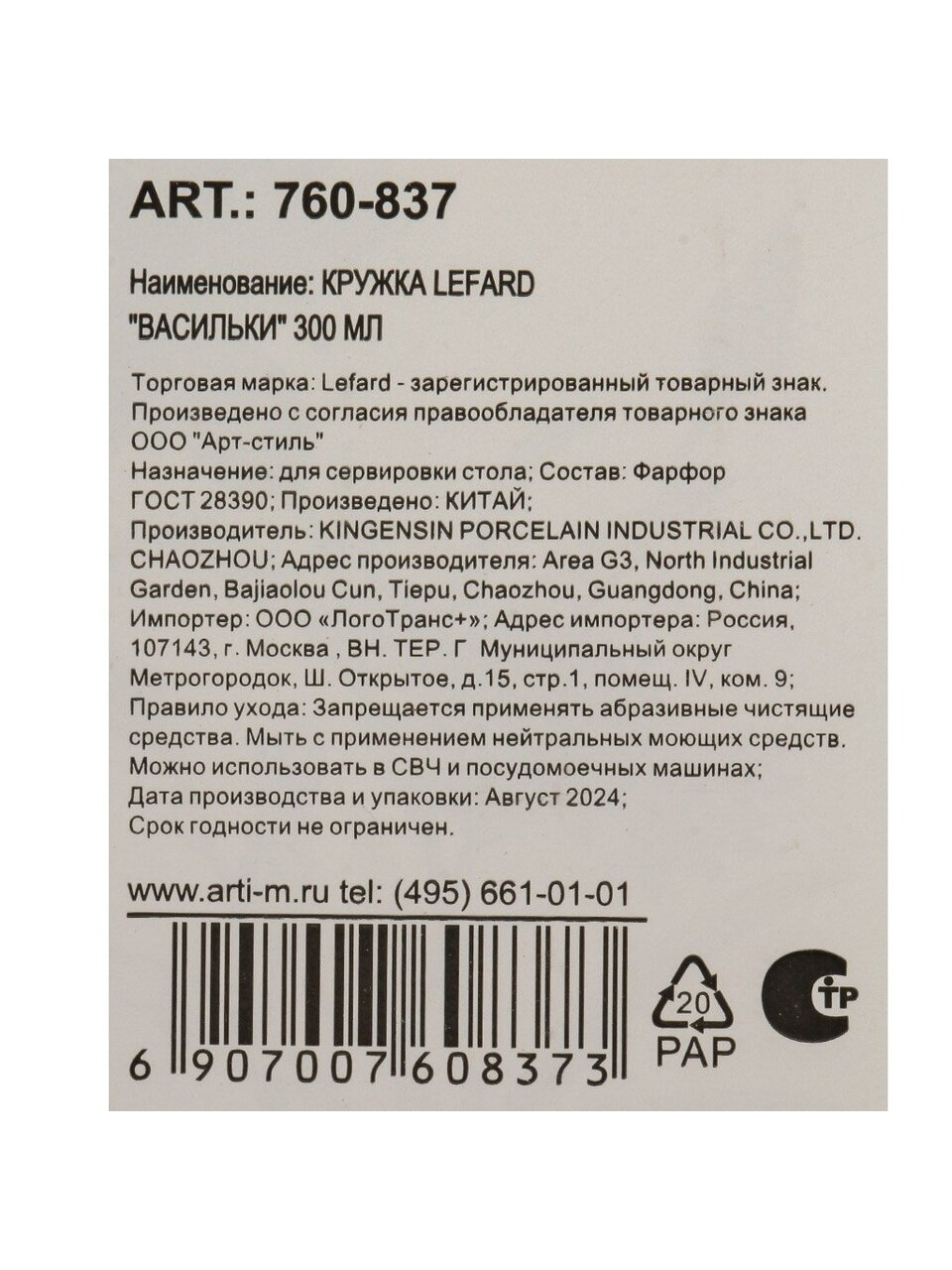 Кружка фарфор Lefard Васильки 300 мл — стильный подарок для женщин и уютное решение для дома: изящный дизайн, прочный фарфор, подходит для СВЧ и посудомойки.