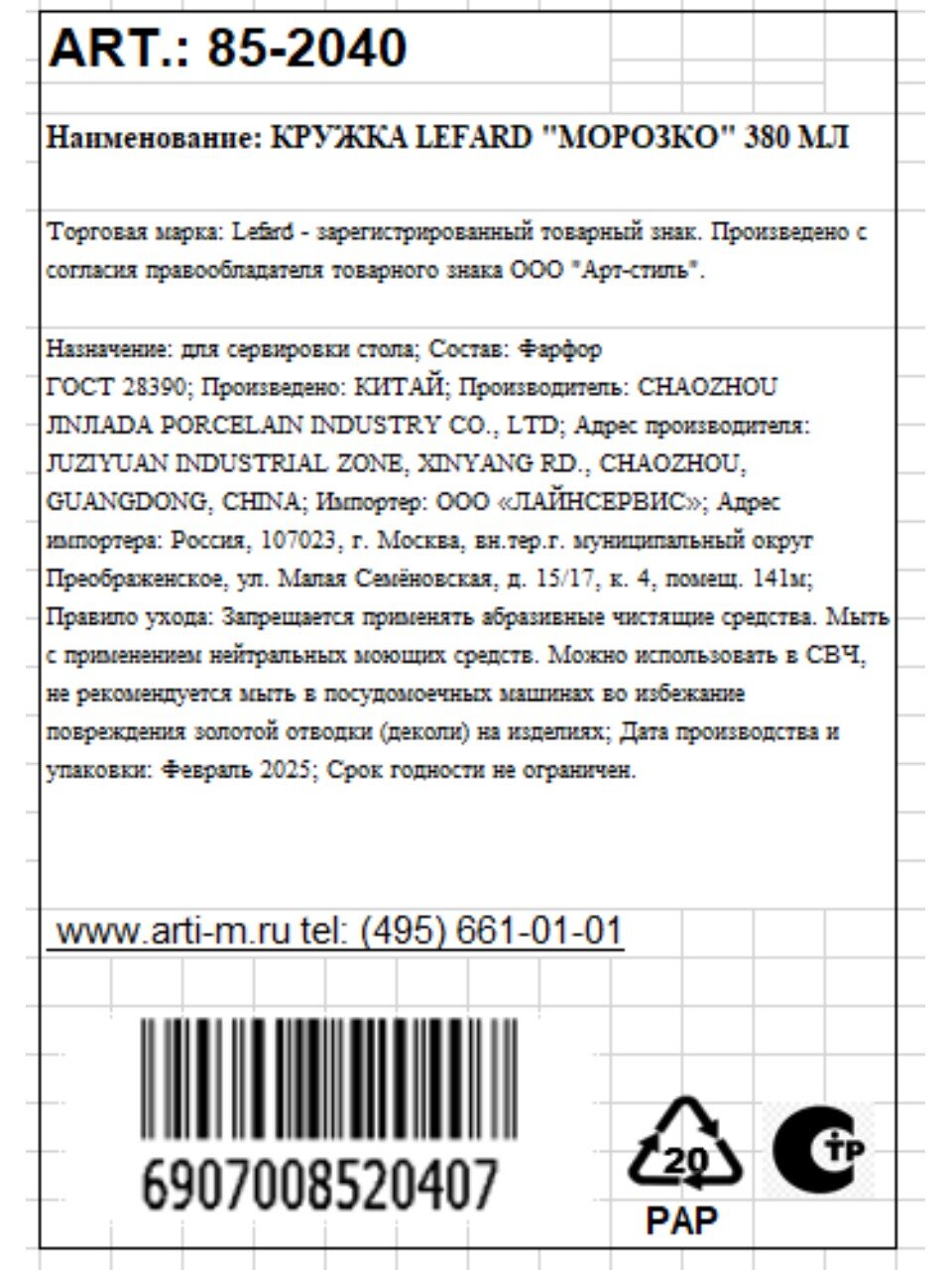 Часто спрашивают, подходит ли кружка Lefard Морозко для микроволновки или посудомоечной машины. Изделие не предназначено для мытья в посудомоечной машине, что обусловлено особенностями декора и фарфора. В отличие от изделий с двойными стенками или металлическими элементами, эта кружка легкая, не перегревается и подходит для горячих и холодных напитков. Как использовать кружку? Просто налейте любимый чай или кофе — 380 мл оптимальны для стандартной порции. В сравнении с аналогами, фарфор Lefard дольше сохраняет тепло и не впитывает запахи.