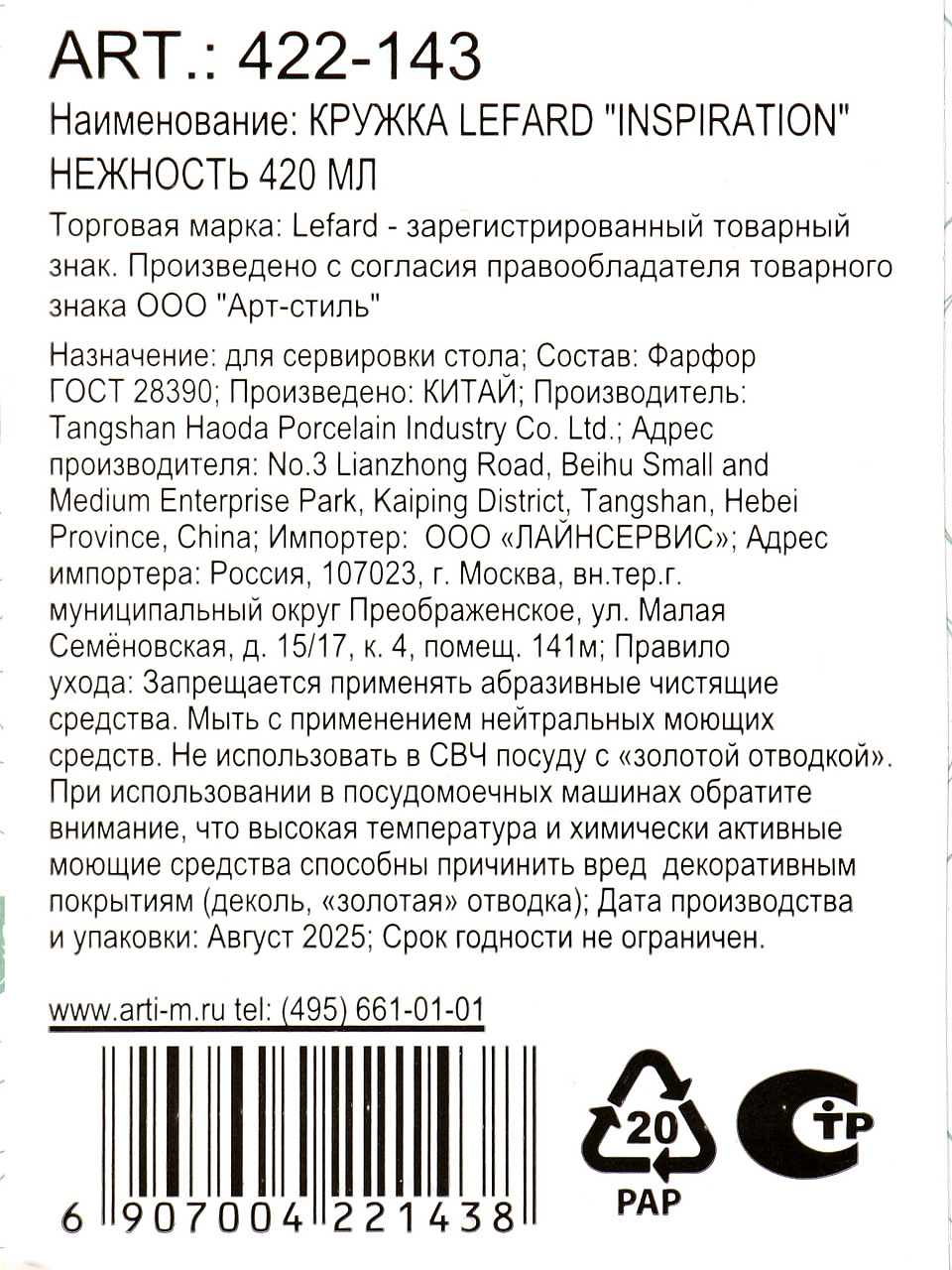 Кружка фарфор, 420 мл, Inspiration Нежность, Lefard, 422-143 - фото 1 от пользователя