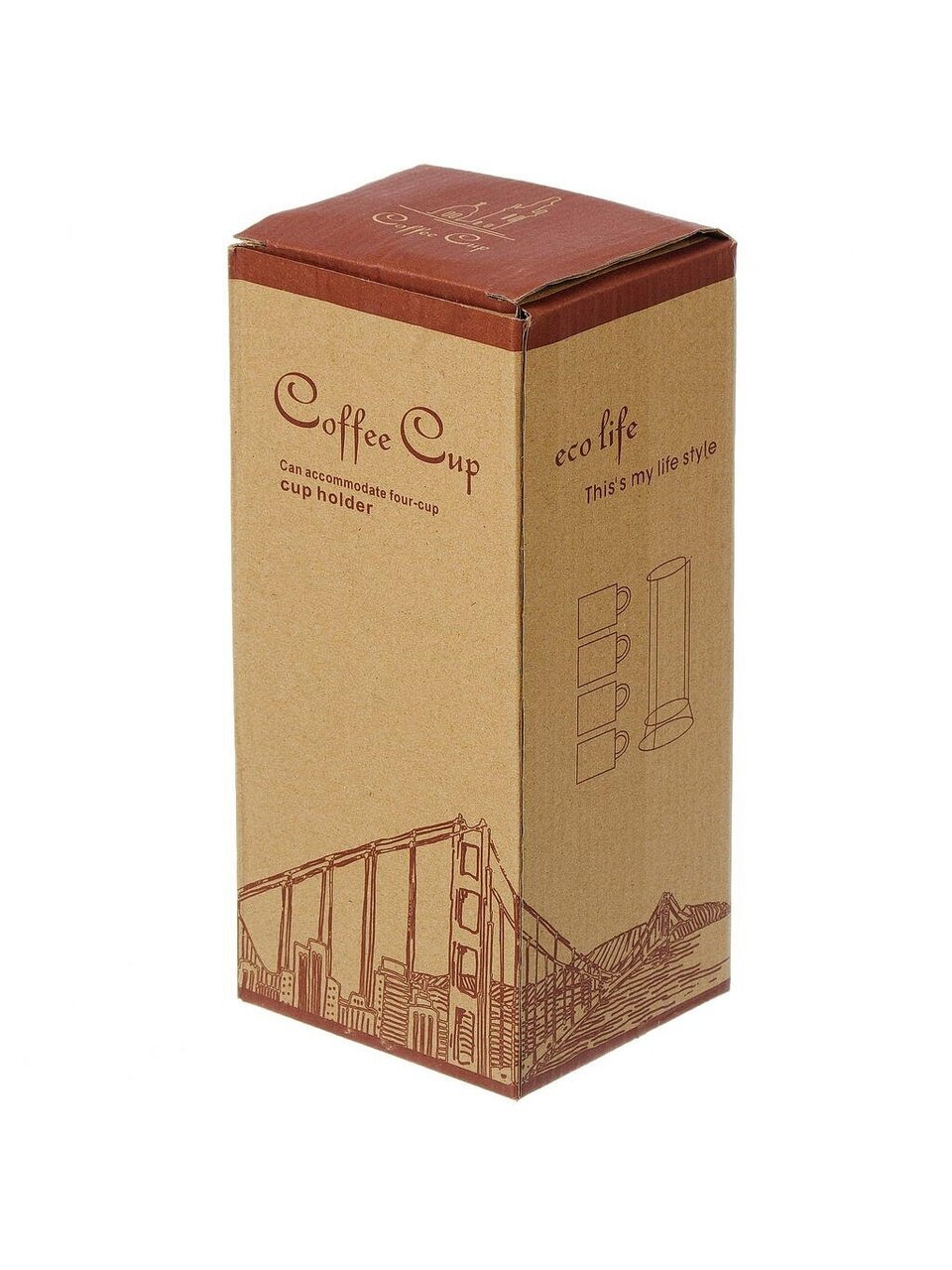 Каждая кружка рассчитана на 250 мл, в комплекте 4 штуки, общий вес набора — 995 грамм, подставка металлическая для компактного хранения.