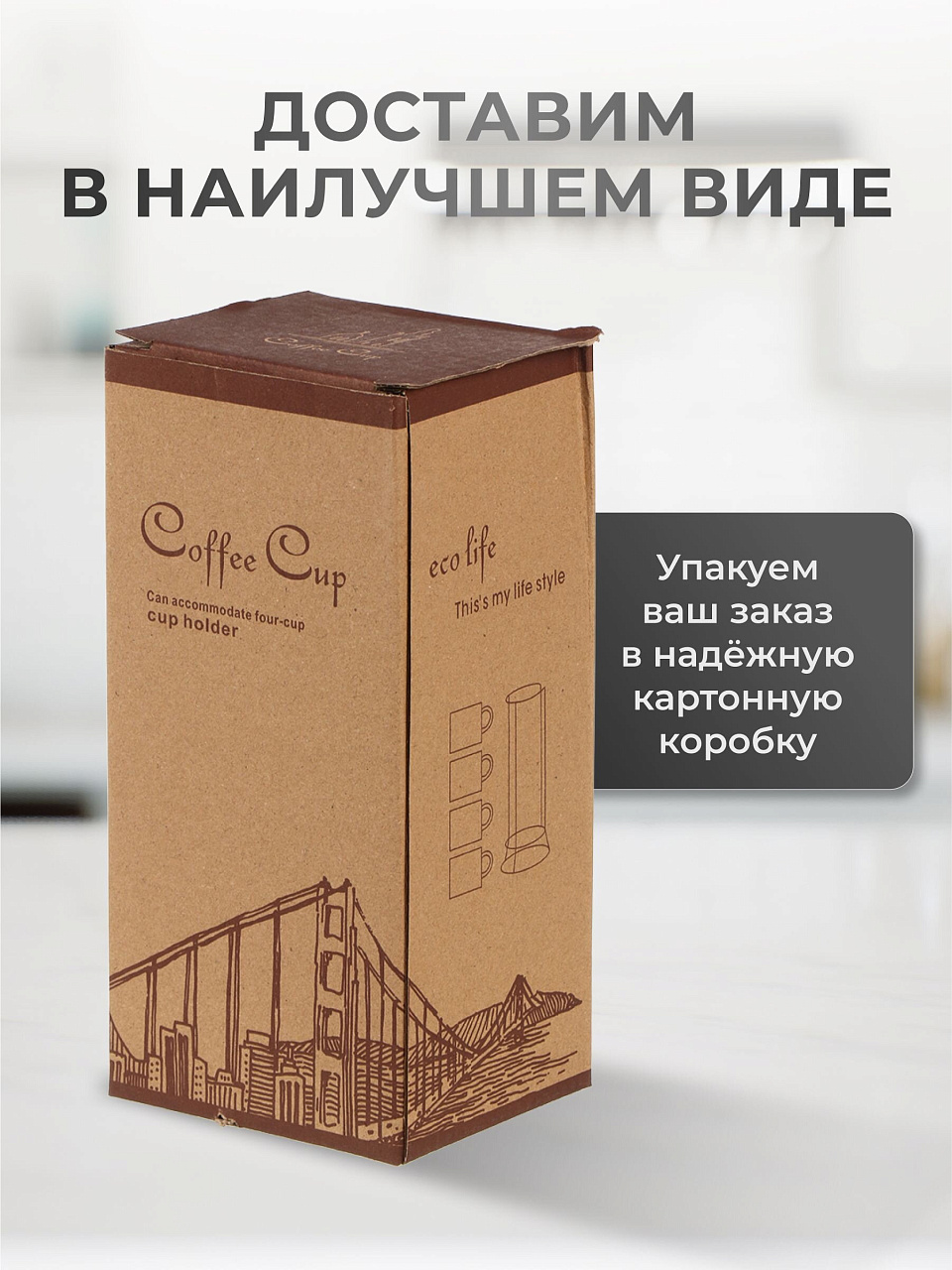 - Практичность: 4 кружки из керамики по 250 мл, подходят для СВЧ и посудомоечной машины; металлическая подставка экономит место