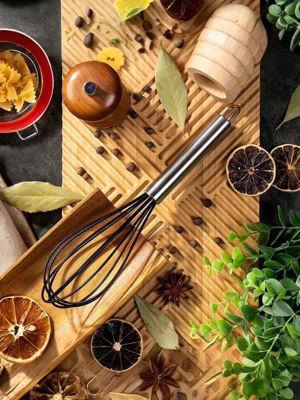 Венчик Daniks Stark позволяет с удобством перемешивать и взбивать мусс, яйца, сливки или жидкое тесто. Эргономичная конструкция модели с отверстием для хранения на крючке.