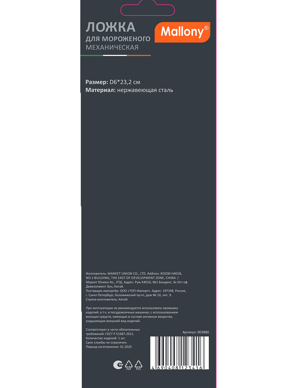 Вы можете приобрести «Ложка для мороженного, нержавеющая сталь, 25х6 см, механическая, навеска, Mallony, 003880» и другие товары в нашем интернет-магазине в Россоши по низким ценам и с бесплатным самовывозом.