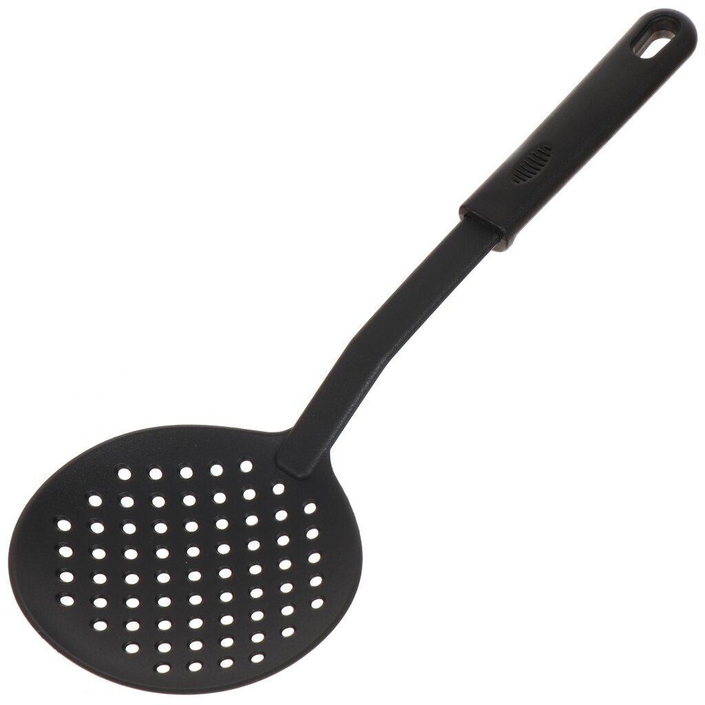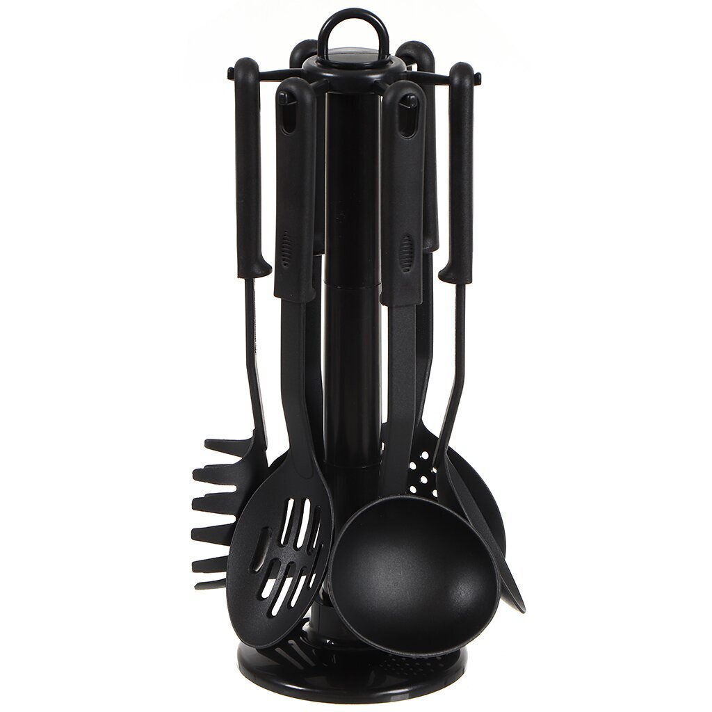 Набор кухонных принадлежностей — практичное приобретение для вашей кухни! С ним готовить любимые блюда станет намного проще и удобнее. Набор включает в себя самые востребованные кухонные принадлежности: половник, лопатку с прорезями, шумовку, картофелемялку, ложку поварскую, лопатку. Рабочая поверхность изделий выполнена из высококачественного нейлона, а основание из прочной стали. Для хранения инструментов предусмотрена подставка с крючками.