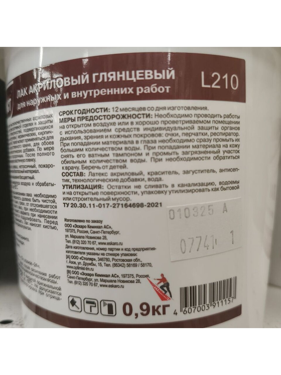 Вы можете приобрести «Лак Оптимист, L210, глянцевый, акриловый, бесцветный, для внутренних и наружных работ, 0.9 кг» и другие товары в нашем интернет-магазине в Брянске по низким ценам и с бесплатным самовывозом.