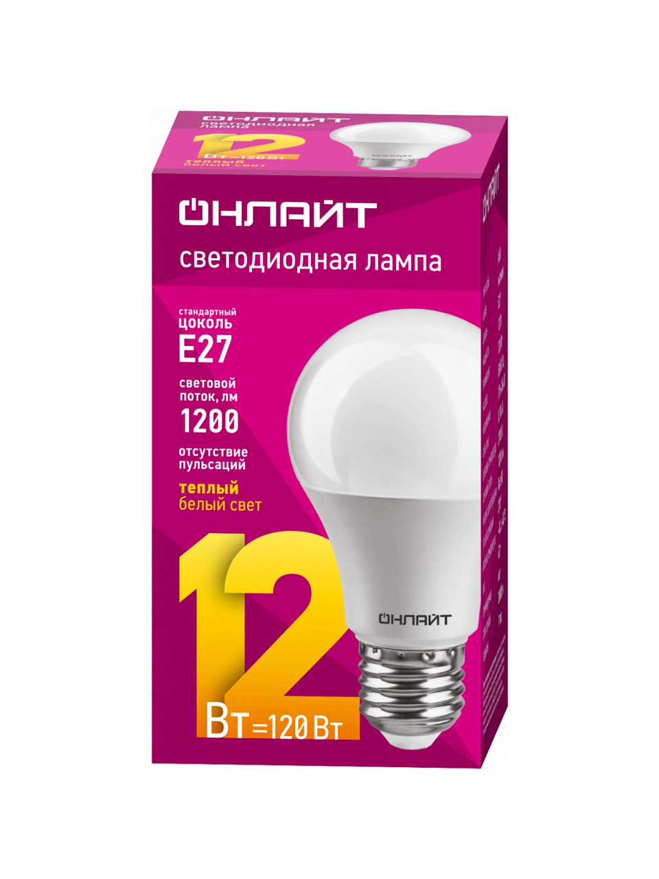 Вы можете приобрести «Лампа светодиодная E27, 12 Вт, 120 Вт, груша, 2700 К, теплый белый свет, Онлайт, 71682» и другие товары в нашем интернет-магазине в Клинцах по низким ценам и с бесплатным самовывозом.