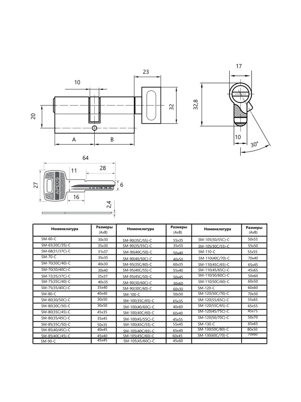 - Цилиндровые механизмы Apecs серии SM - одни из немногих существующих на рынке России цилиндров, которые прошли испытания и сертификацию в России. Серия SM предназначена для установки во входные двери и обеспечивает уровень защиты, соответствующий 2 классу (из 4 возможных) по российскому ГОСТу.
