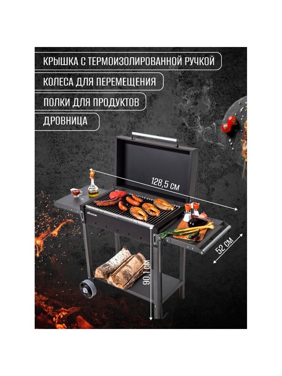 Мангал серии МАН 203 от компании Gratar позволяет готовить на живом огне с использованием дров. Он изготовлен из толстой высококачественной стали, которая выдерживает высокие температуры, а его специальная конструкция с усиленными рёбрами жёсткости предотвращает температурную деформацию. Большие колёса позволяют с комфортом перемещать мангал. Вместительные нижняя и две боковые полки позволяют разместить необходимый инвентарь для приготовления. Боковые полки - складные, благодаря этому Вы сможете сэкономить место при хранении мангала. Крышка с удобной алюминиевой ручкой позволит Вам готовить большое разнообразие блюд требующие длительного приготовления. 145 мм - оптимальная глубина топки. 11 посадочных мест для шампуров обеспечивают плавную регулировку угла поворота. 2,5 кг мяса можете приготовить одновременно. Многофункциональный передвижной мангал окрашен термостойкой эмалью выдерживающей температуру до 800 градусов цельсия.