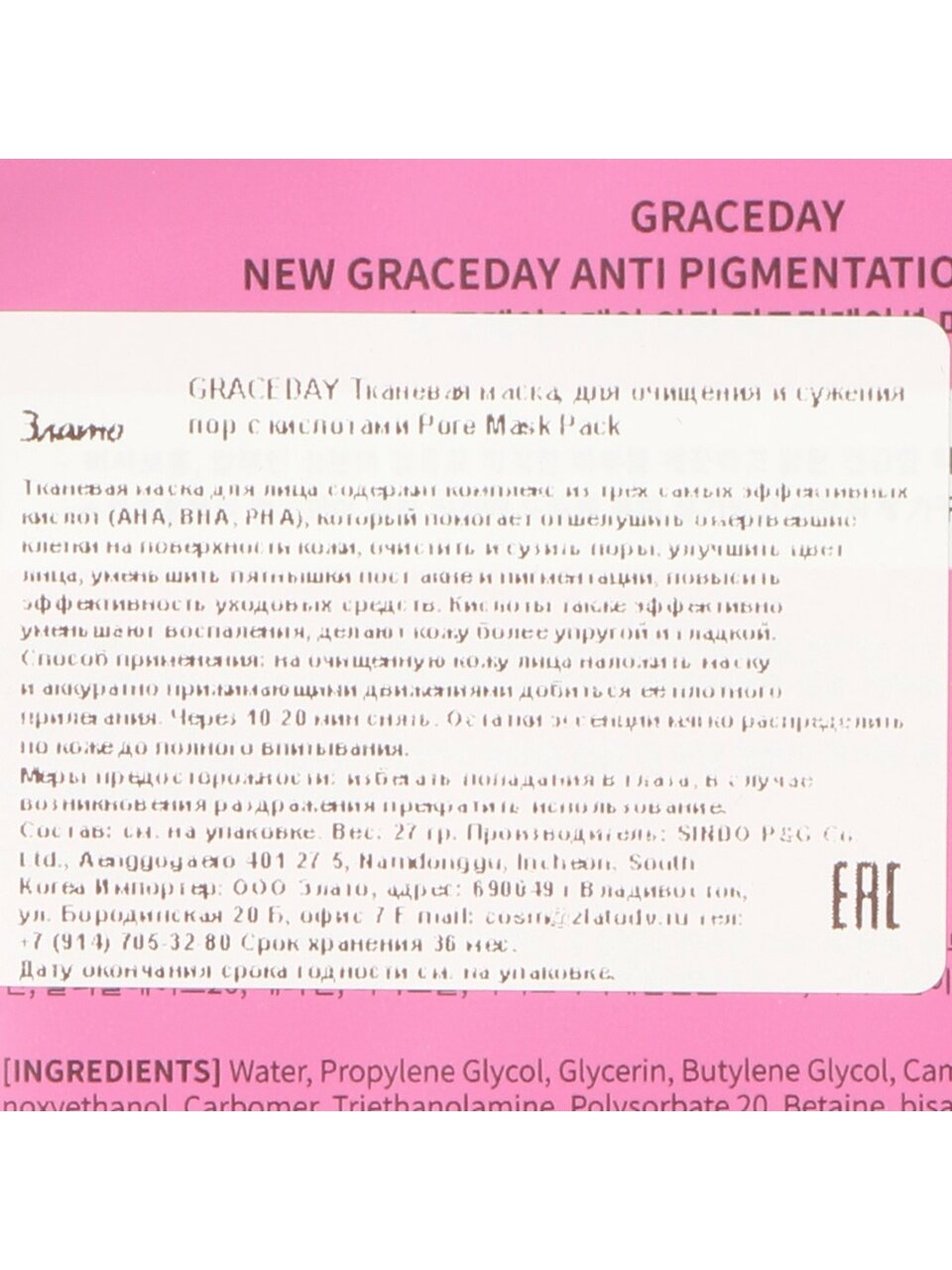 Маска не вызывает раздражения, подходит для ежедневного применения и особенно удобна для занятых людей. Если вы спрашиваете: «Как использовать тканевую маску Grace Day?» — просто нанесите на очищенное лицо, расслабьтесь и наслаждайтесь результатом.