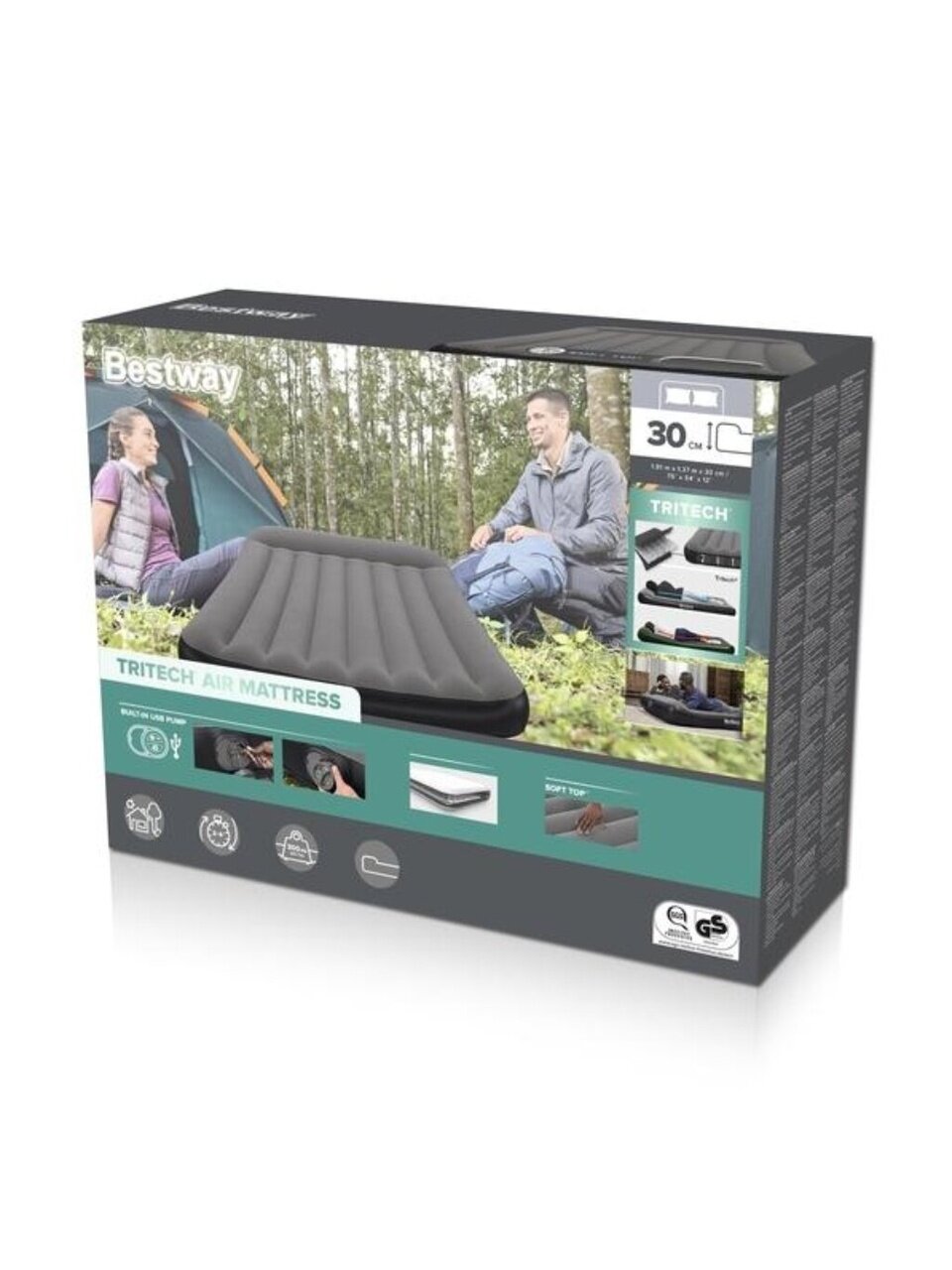 Матрас надувной Bestway 191х137х30 см — идеальное решение для комфортного сна и отдыха дома или на даче. Благодаря современному дизайну и продуманной конструкции, такой матрас легко впишется в любой интерьер и обеспечит максимальное удобство. Высокая нагрузка до 300 кг позволяет использовать его как двуспальный, а прочный материал с флокированным покрытием создает приятные ощущения и предотвращает скольжение постельного белья. Для быстрой подготовки к отдыху предусмотрен встроенный насос, работающий от USB 5В — надувание и сдувание происходит без лишних усилий, что особенно удобно в условиях загородного дома или приёмов гостей.