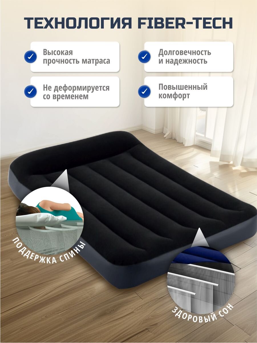 Вместо традиционных перегородок из ПВХ, Intex использует большое количество высокопрочных волокон, что предотвращает их растяжение и деформацию в процессе использования. Благодаря этому, матрас не проминается и не продавливается, обеспечивая здоровый и комфортный сон.