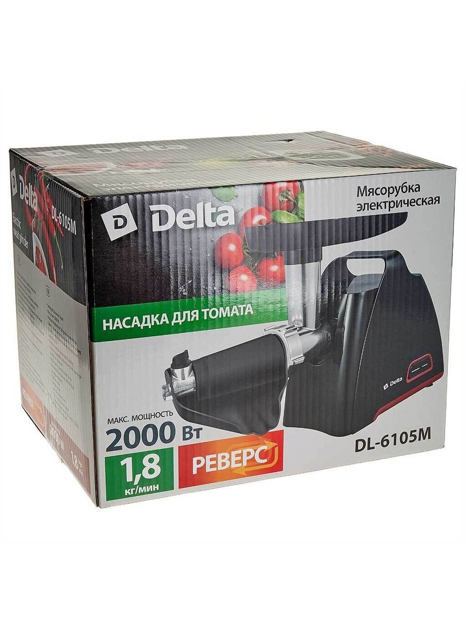 Вы можете приобрести «Мясорубка электрическая Delta Lux, DL-6105M, 2000 Вт, реверс, 1.8 кг/мин, пластик, 4 насадки, черная» и другие товары в нашем интернет-магазине в Белгороде по низким ценам и с бесплатным самовывозом.