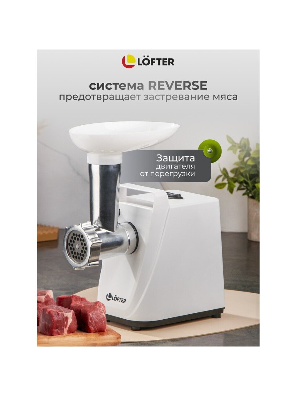 Мясорубка Lofter MG-S7 оснащена системой реверса, что значительно упрощает процесс измельчения мяса и предотвращает его застревание. Прорезиненные ножки обеспечивают устойчивость на любой поверхности, что делает использование прибора безопасным и комфортным. Механическое управление позволяет легко контролировать процесс работы, а защита двигателя от перегрузки гарантирует долговечность устройства.