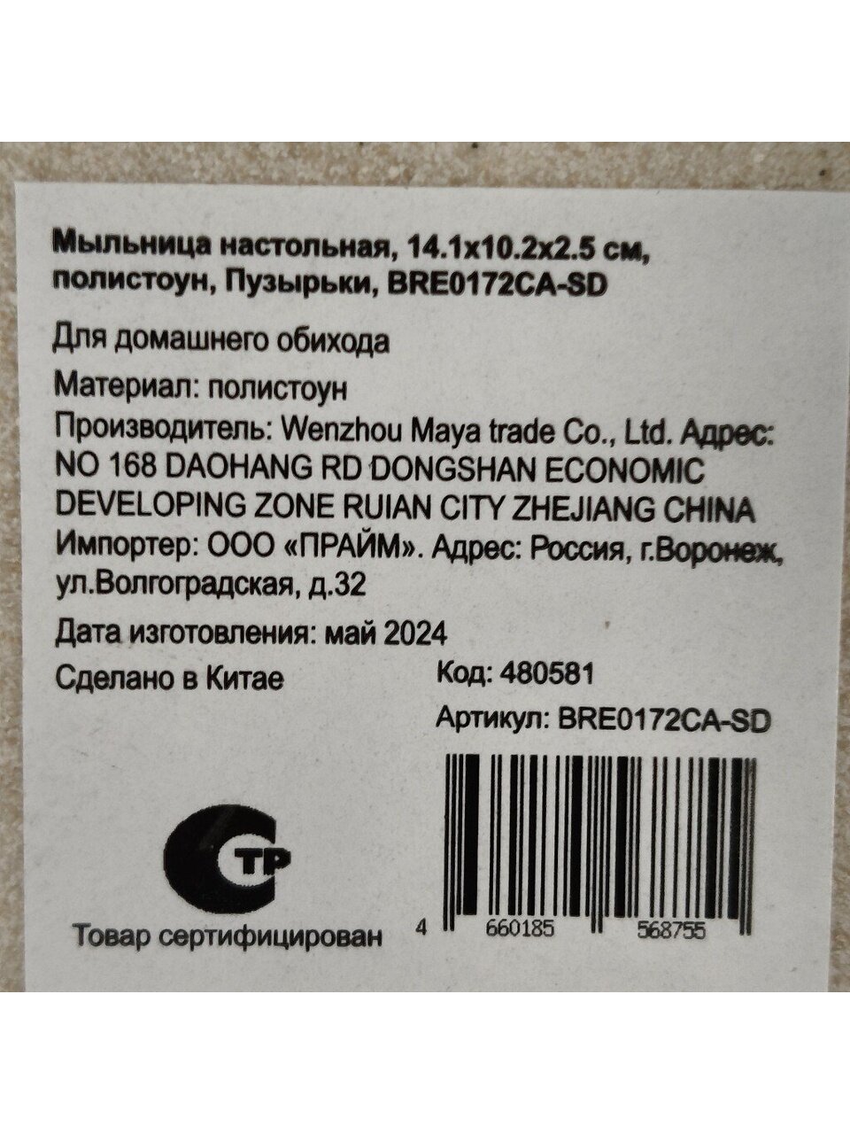 Вы можете приобрести «Мыльница настольная, Пузырьки, полистоун, 14.1x10.2x2.5 см, BRE0172CA-SD» и другие товары в нашем интернет-магазине в Обнинске по низким ценам и с бесплатным самовывозом.