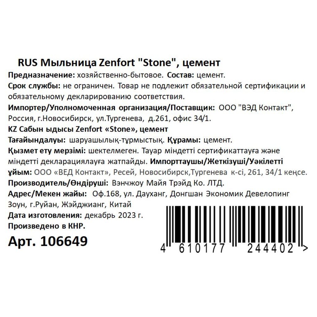 Мыльница настольная Zenfort Stone — стильное решение для ванной: керамика, цемент, компактные размеры 8×11.8×2 см. Защита мыла и современный дизайн.