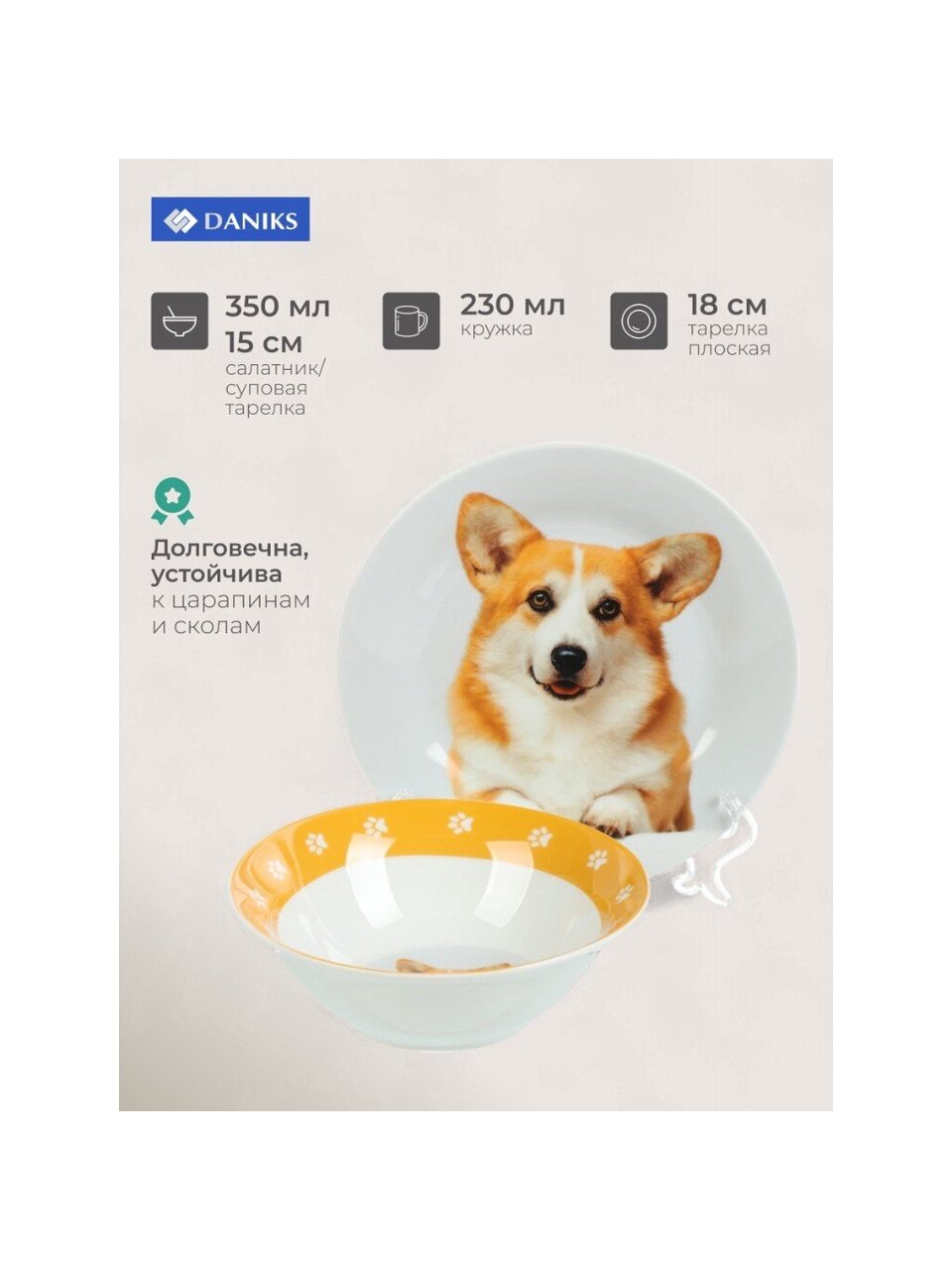 Вы можете приобрести «Набор посуды керамика, 3 шт, Корги, тарелка 17.5 см, салатник 15 см, кружка 230 мл, Daniks, C1008» и другие товары в нашем интернет-магазине в Серпухове по низким ценам и с бесплатным самовывозом.