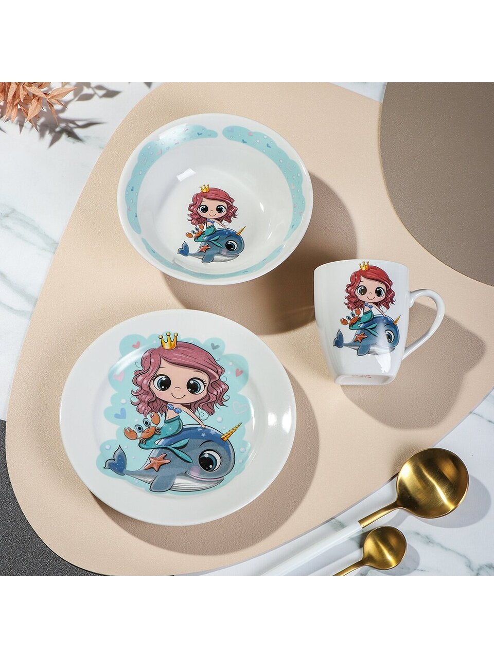 Вы можете приобрести «Набор детской посуды фарфор, 3 шт, Русалка и друг Кит, тарелка 17.5 см, салатник 360 мл, кружка 210 мл, Daniks» и другие товары в нашем интернет-магазине в Брянске по низким ценам и с бесплатным самовывозом.