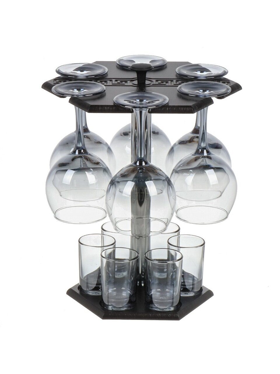 В набор входит 12 предметов, выполненных из высококачественного стекла. Шесть бокалов для вина объемом 280 мл и шесть стопок объемом 50 мл идеально подойдут для подачи любимых напитков. Особенностью этого набора является наличие бара, который добавляет удобство и элегантность в хранение и подачу алкоголя.